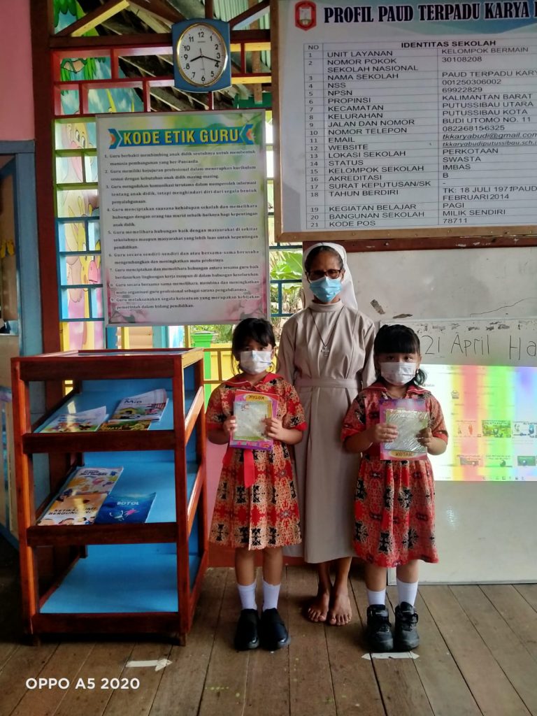 Bagi anak yang memberikan jawaban dengan benar, diberikan apresiasi sebagai wujud penghargaan tentang pengetahuan yang telah didapatnya. Kemudian anak-anak melanjutkan kegiatan mewarnai gambar R.A. Kartini