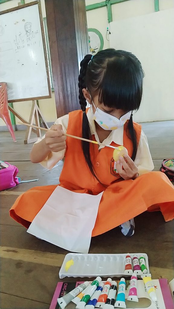 Kemudian, kegiatan dilanjutkan dengan melukis telur yang dilakukan oleh