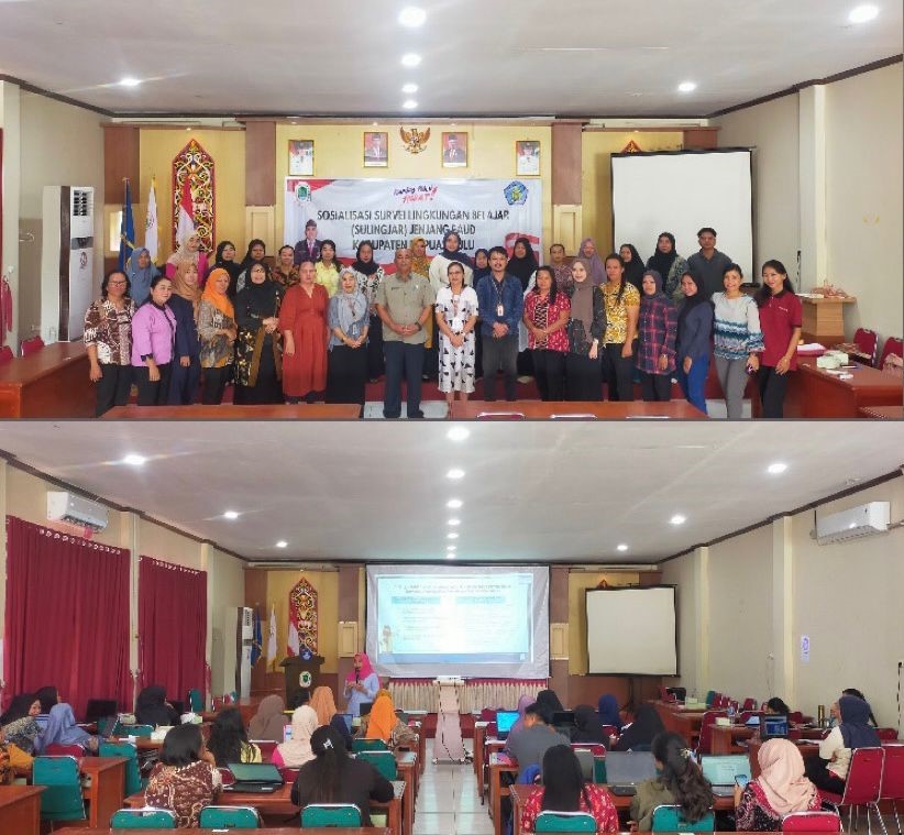 Pada hari kamis tanggal 3 oktober 2024 Bidang Pendidikan Anak Usia Dini dan Pendidikan Masyarakat Dinas pada Pendidikan dan Kebudayaan Kabupaten Kapuas Hulu melaksanakan Sosialisasi Survei Lingkungan Belajar (SULINGJAR) untuk Jenjang Pendidikan Anak Usia Dini. Ibu Paskalia Lisa, S.E.,M.Ak selaku Kepala Bidang Pendidikan dan Kebudayaan Kabupaten Kapuas Hulu membuka Kegiatan ini yang diselenggarakan di aula Dinas Pendidikan dan Kebudayaan Kabupaten Kapuas Hulu. Kegiatan sosialisasi ini berlangsung selama 2 hari tanggal 3 oktober – 4 oktober 2024.